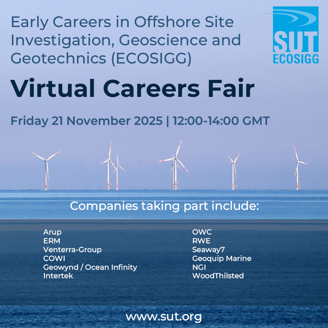 The Early Careers in Offshore Site Investigation, Geoscience and Geotechnics group (ECOSIGG) is a young careers special interest group of the Society for Underwater Technology. To achieve carbon net zero targets, there is an extreme demand for the recruitment of Geotechnical Engineers and Geoscientists into the booming offshore renewables industry. ECOSIGG is holding an industry-wide virtual careers fair through Zoom, with companies from across Europe presenting their career and research opportunities.