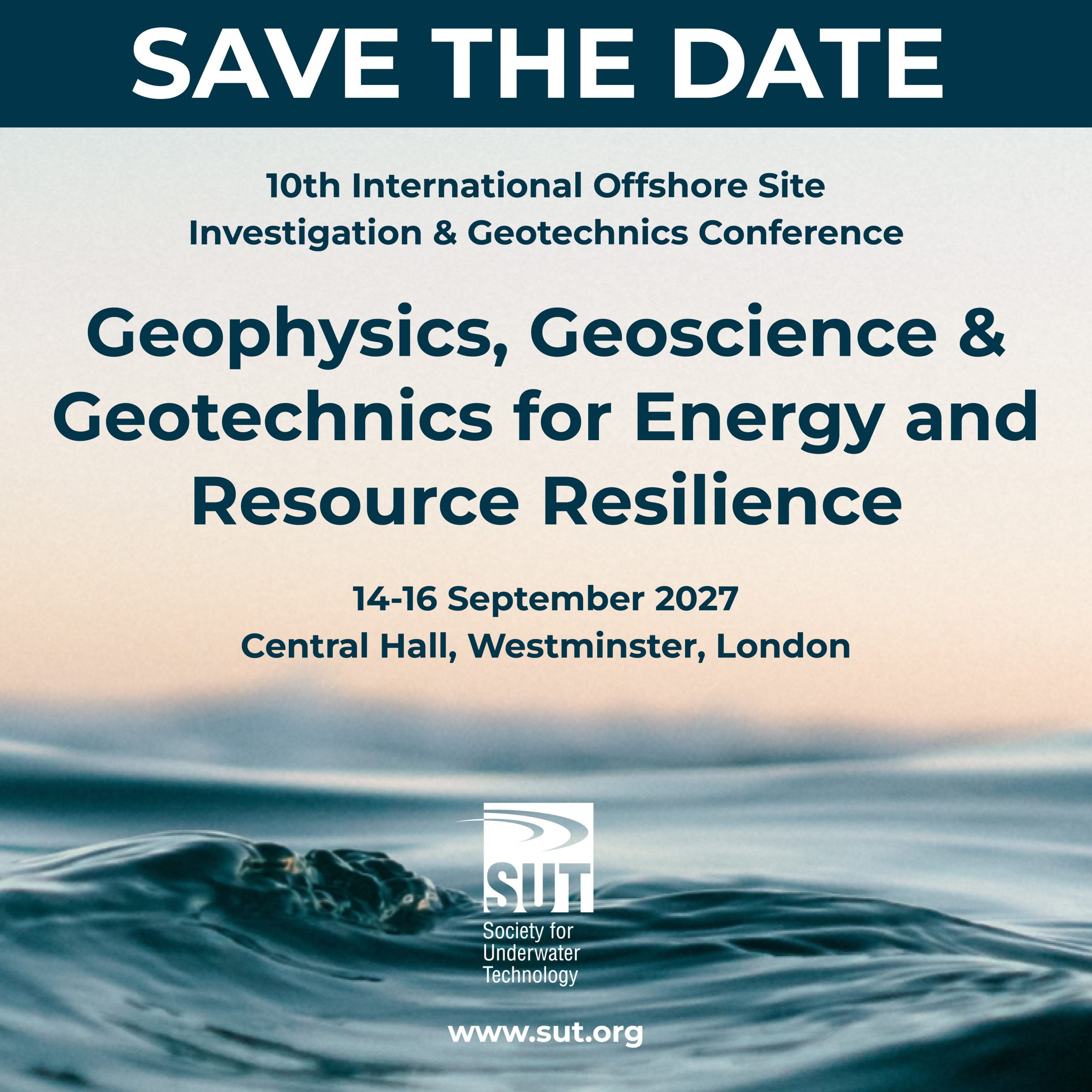 The SUT’s Offshore Site Investigation and Geotechnics (OSIG) committee is pleased to announce that its 10th international conference – Geophysics, Geoscience & Geotechnics ​for Energy and Resource Resilience – will take place from 14-16 September 2027 at Central Hall Westminster in London.