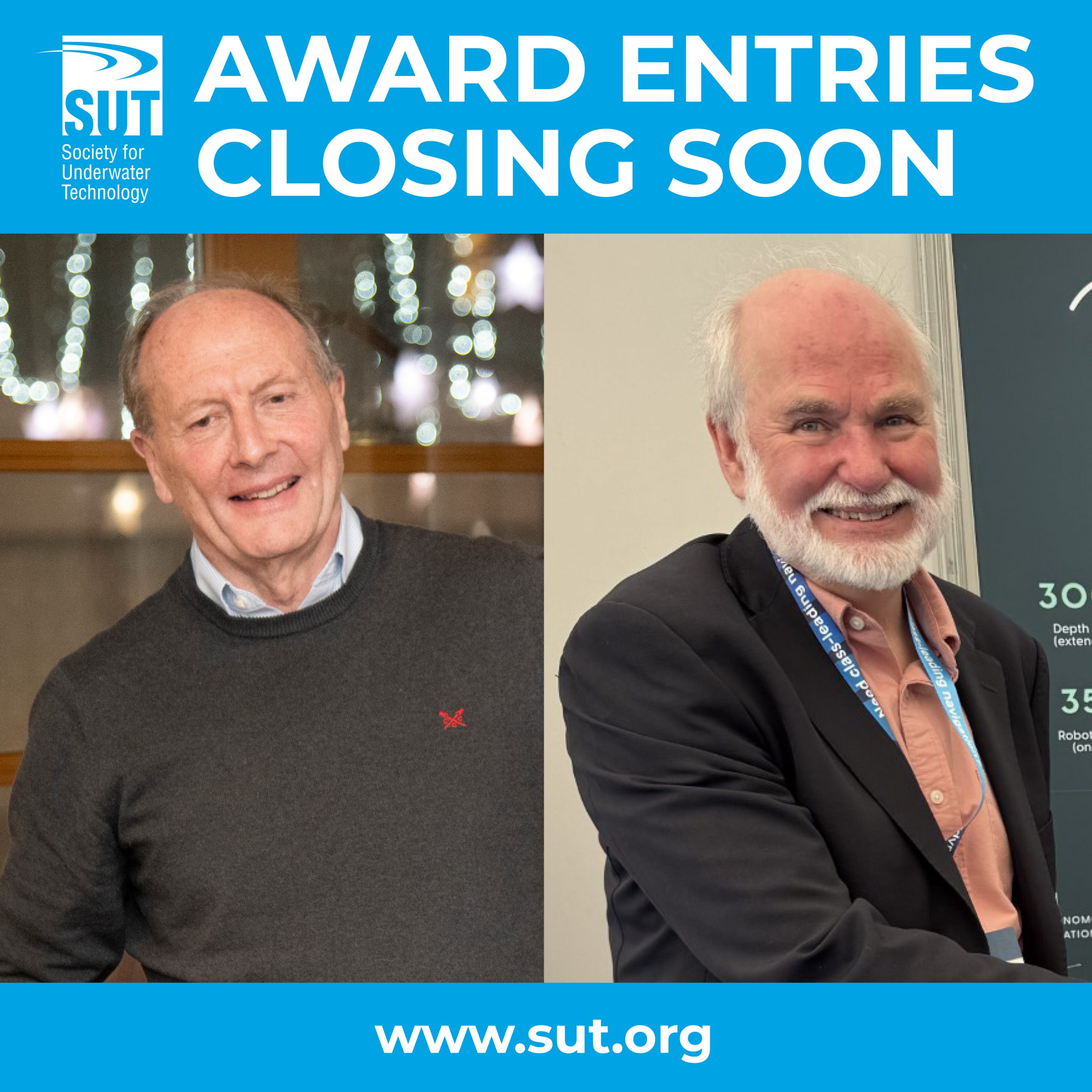 The 31 October deadline draws close for two key Society for Underwater Technology (SUT) awards – the Gwyn Griffiths Underwater Robotics Award and the Mick Cook Marine Site Investigation Award.