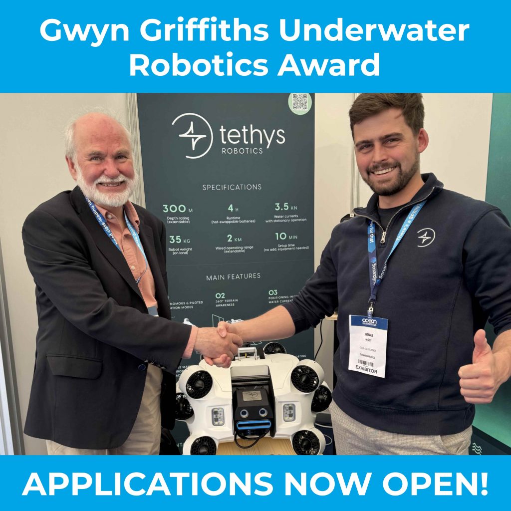 “We are extremely grateful to both Gwyn Griffiths and Mick Cook for their generosity in founding these awards, the focus they have highlighted on the disciplines of underwater robotics and offshore site investigations and geophysics/geosciences. We look forward to a great many high-level nominations.”
