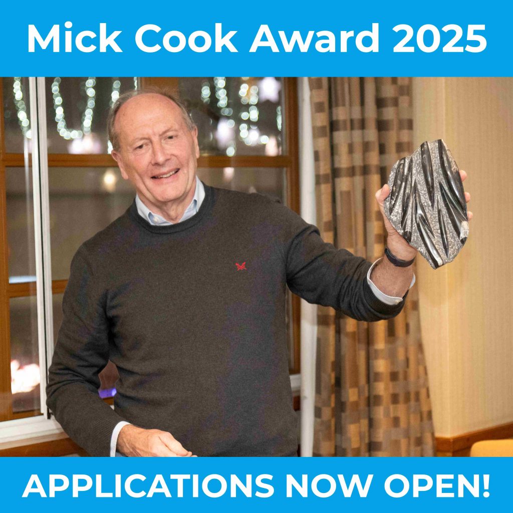 The Mick Cook Marine Site Investigation Award. (established in 2023) is open to all working in the field of marine site investigations and characterisations globally, regardless of where they are in their career, the award recognises industry professionals who have made a significant contribution to Marine Site Investigation and Characterisation, covering the broad disciplines of Geophysics and Geotechnics. The winner will receive £1000 and a certificate.